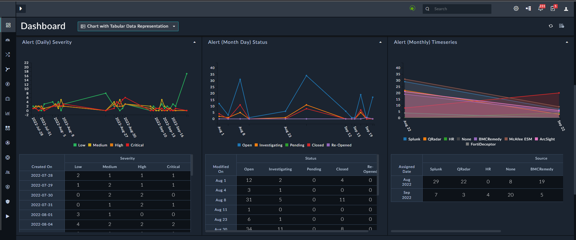For example, you can create a dashboard that displays alerts that are Critical and High and then assign them to users who have a role of handling alerts. Users can prioritize their work looking at their Dashboard, which is displaying the Critical and High alerts.