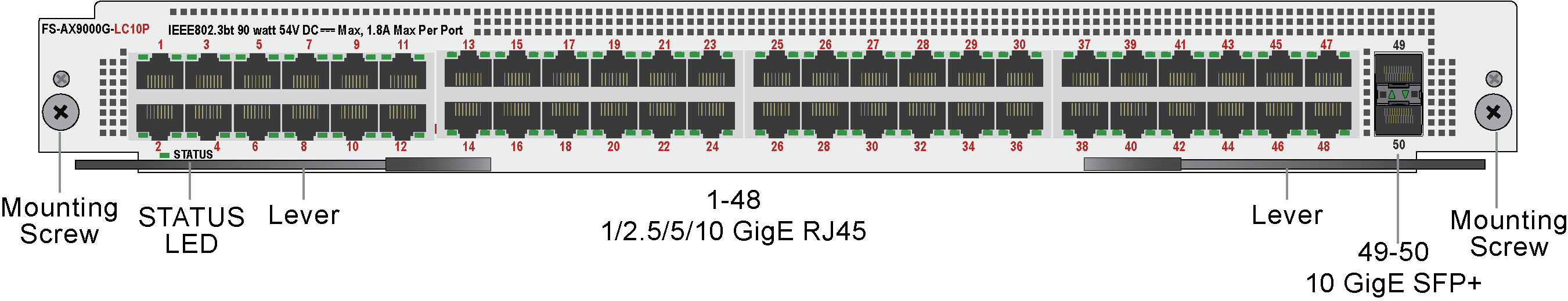 The FS-AX9000G-LC10P features the following front panel interfaces: