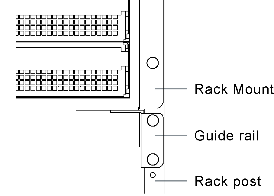 The rack mount brackets provided with the chassis are for fixing the chassis to the rack, not for supporting the load. Be sure to use guide rails that are compatible with your equipment rack and are capable of supporting the weight of the chassis (over 300 lbs).