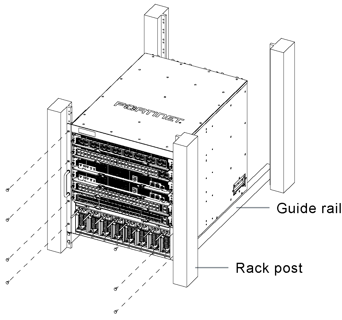 Attach guide rails to the rack and mount the chassis on the guide rails.