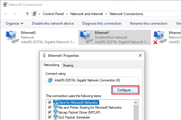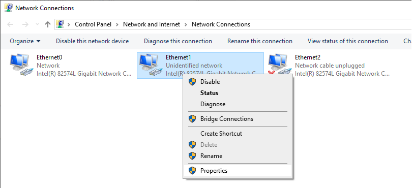 Right-click on the network adapter connecting to the FortiTelemetry Controller (FortiGate) and click on Properties.