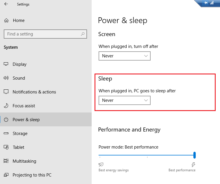 On the Windows system, search and navigate to System Settings > Power & Sleep settings.