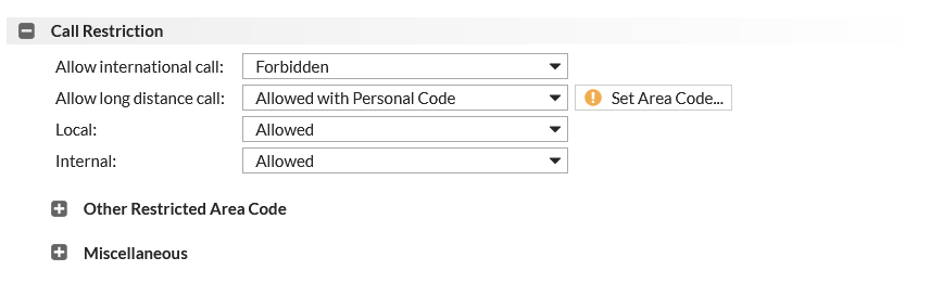 - Set the appropriate call restriction to Allowed with Account Code, Allowed with Personal Code, or Allowed with Account and Personal Code.