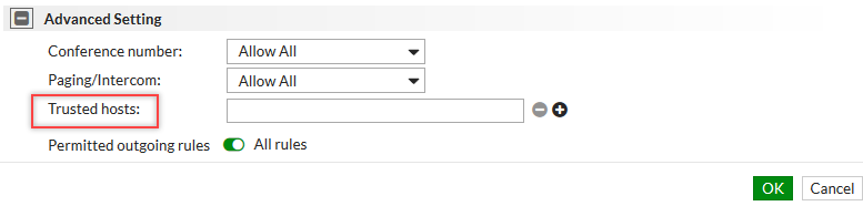 Certain IP subnets can also be designated as trusted for extensions to register to FortiVoice. This configuration can allow local networks to access the system but restrict remote access to the system and restrict remote access to the system.