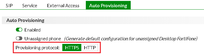 Using HTTPS to provision FortiFone devices with FortiVoice is recommended.
