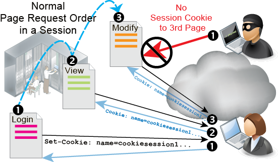 However, sessions alone are not enough to ensure that a client’s requested operations make sense. The client’s next page request in the session could break the web application’s logic unless requests are restricted to valid ones.