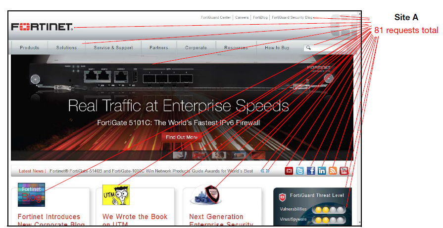 Likewise, a single corporate front page or Zenphoto gallery page might involve 81 requests for images, JavaScripts, CSS pages, and other external components. A search page, however, might normally only have 6 requests, and merit a lower threshold when configuring rate limiting. For details, see Rate limiting.