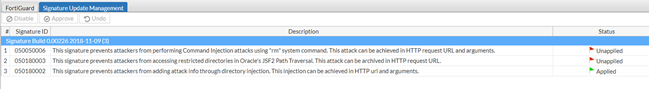 When you update the FDS, new signatures in the update will be listed in Signature Update Management pane, and you can view the new signatures here.