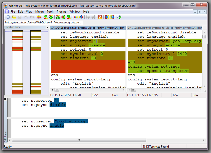 Configuration differences highlighted in WinMerge