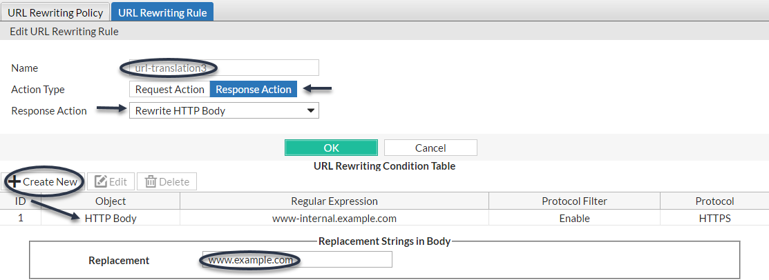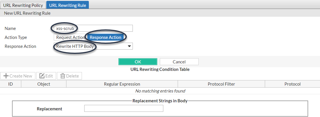 - Rewrite HTTP Body—In Replacement, type the string that will replace content in the body of HTTP responses. For details, see What are back-references? and Cookbook regular expressions.