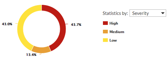 When viewing the pie chart by Severity or Scanner Type, click an element of the pie chart to drill down another level and view the proportion of specific types of vulnerabilities for that element: