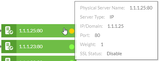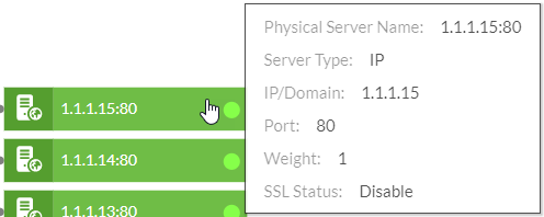 Each server policy branches to its server or server pool, and, if in a server pool configuration, then leads to each server in the pool. You can click the