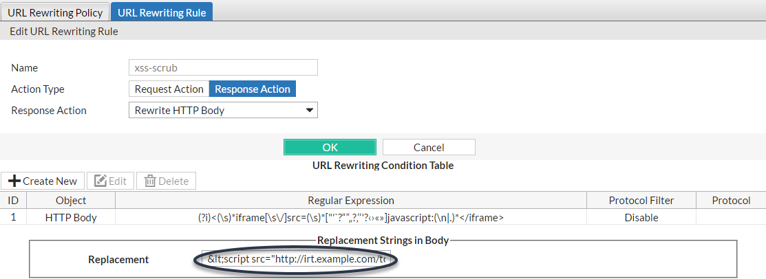 - Rewrite HTTP Body—In Replacement, type the string that will replace content in the body of HTTP responses. For details, see What are back-references? and Cookbook regular expressions.