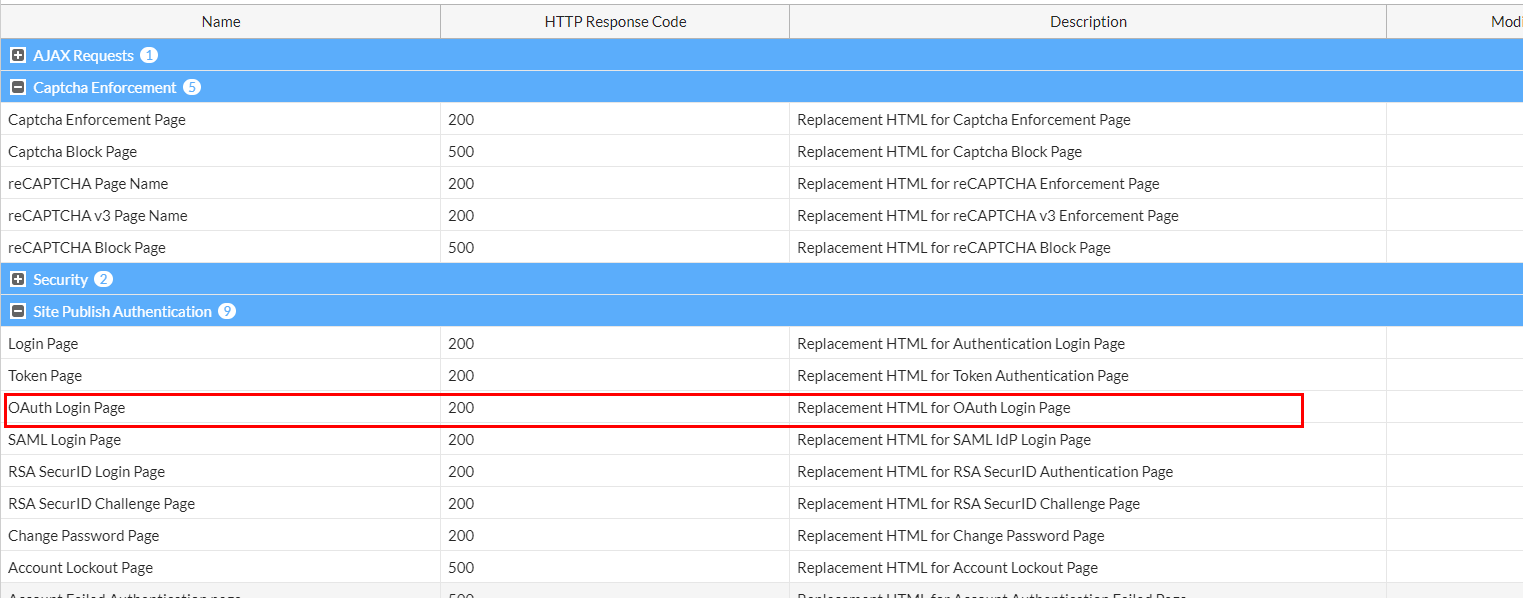 - FortiWeb has pre-defined the commonly seen Google, Facebook, FortiAuthenticator, and Okta OAuth requests for user authentication.