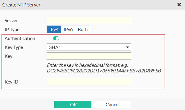 To further enhance the security of system time synchronization, FortiWeb supports hashing authentication for NTP requests. The supported Key Types (hashing algorithms) for authentication are: