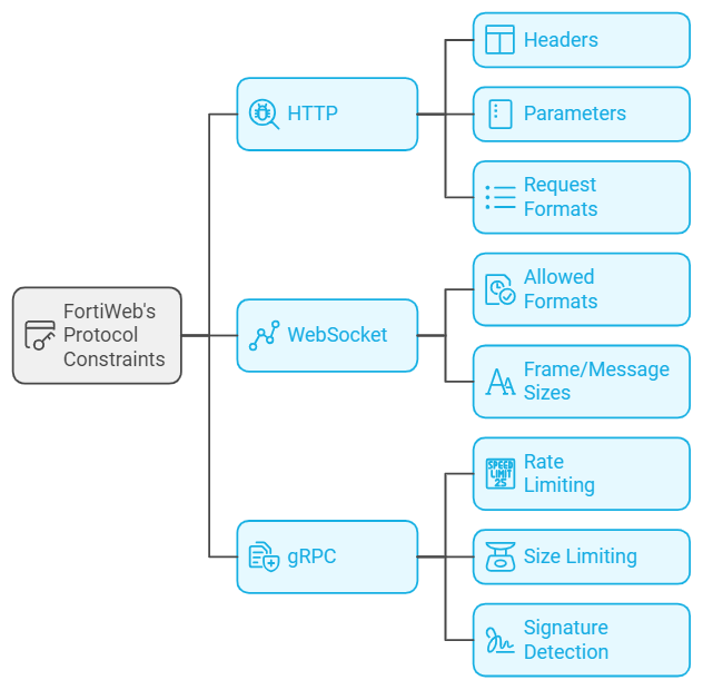 For HTTP, FortiWeb checks elements such as headers, parameters, and request formats.