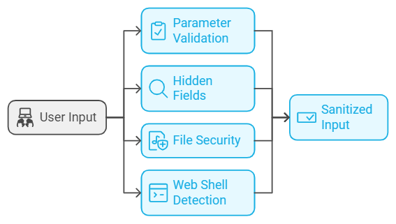 The Input Validation modules include Parameter Validation, Hidden Fields, File Security, and Web Shell Detection.