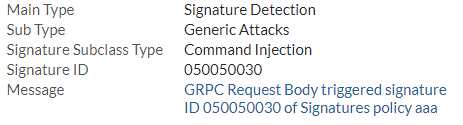 For signatures selected in Web Protection Profile, they can detected in gRPC request header.