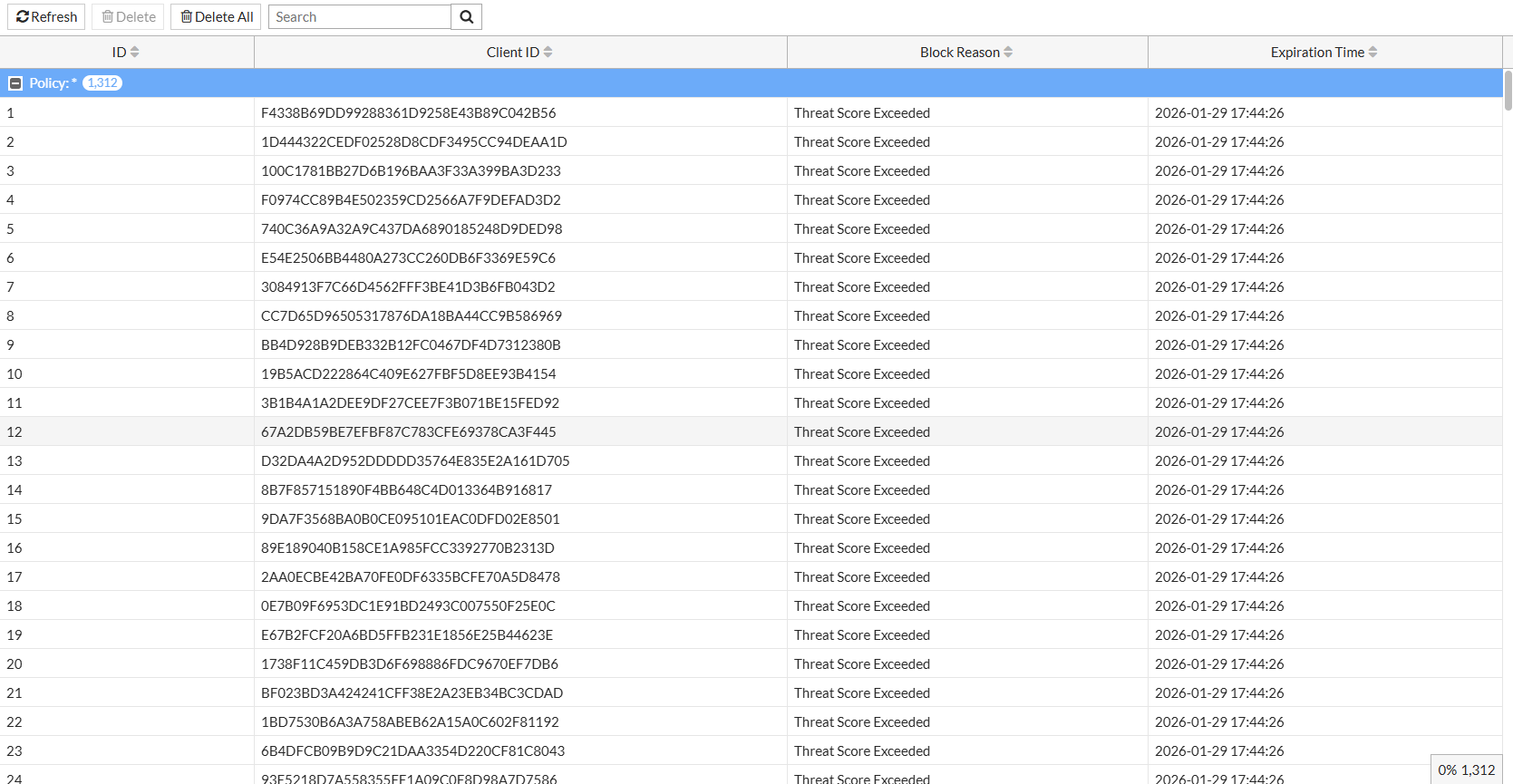 Go to Dashboard > Blocked Client IDs. If it's not available in the Dashboard menu, refer to Monitors for how to add a monitor.