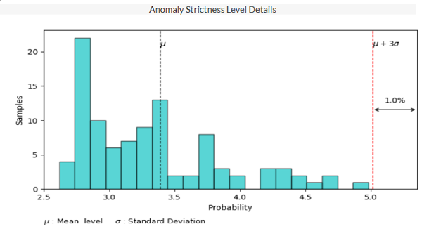 If the probability of the sample is larger than the value of "μ + the strictness level * σ", this sample will be identified as anomaly.