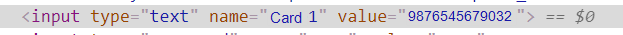 As shown in the following screenshot, the name of the input field "card 1" is displayed as is in the source code of a transaction page.