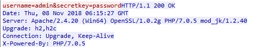 The following screenshot shows the password (the "secretkey" parameter) without being encrypted.