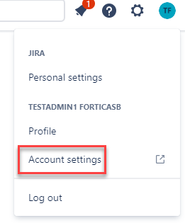 1. On the Jira site, click on the user icon drop down menu and select Account settings.
