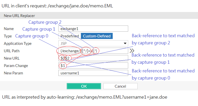 Back-references are used whenever you want the output/interpretation to resemble the original match: they insert a substring of the original matching text. Like other regular expression features, back-references help to ensure that you do not have to maintain a large, cumbersome list of all possible URL or HTML permutations and their variations or translations when using features such as custom attack signatures, or rewriting.