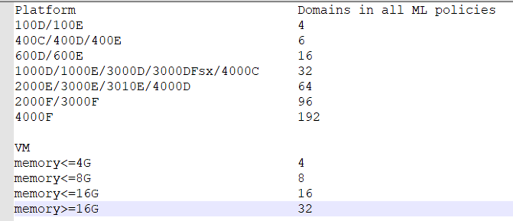 2. One machine learning policy can create one or more domains; no matter how many machine learning policies are enabled;