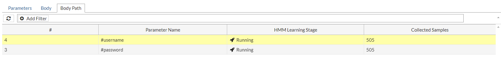 - Discarded—FortiWeb has determined that it cannot build a mathematical model for these parameters, and therefore will not use anomaly detection to protect them.