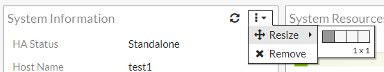 The System Information widget on the dashboard displays the serial number and the status of basic systems, such as the firmware version, system time, up time, and host name, and high availability (HA) status.