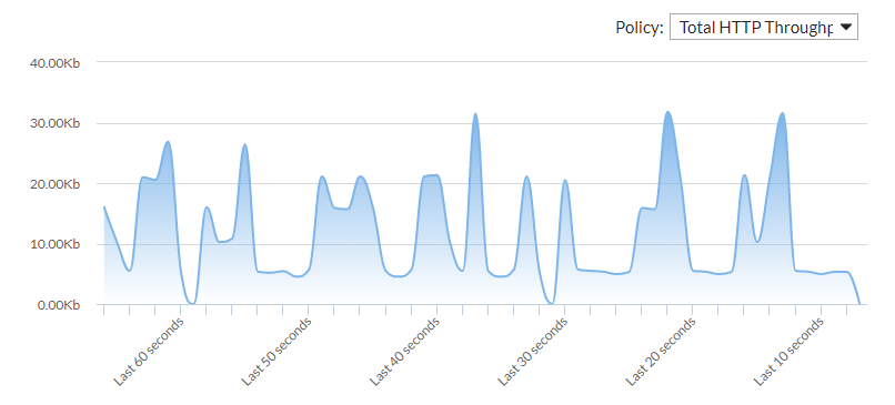 In the top-right corner of the widget, use the Policy drop-down menu to select either the total HTTP throughput or the HTTP throughput for a specific server policy.