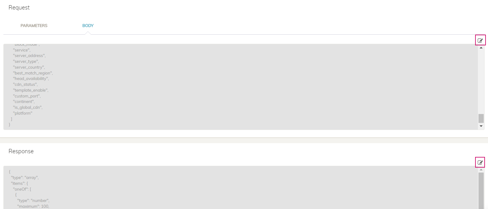 - In Body tab, check the request body learned by the machine learning model. You can click Edit to modify them. For more information, refer to Supported parameter and body structure.