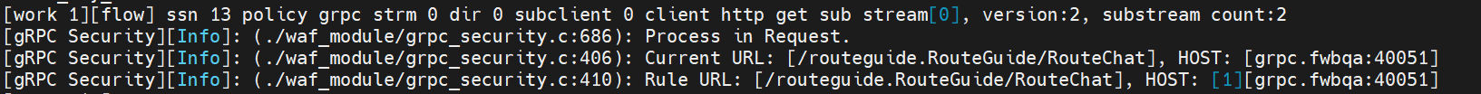 When Web Protection > Protocol > gRPC > gRPC Security Policy > Enable Attack signature is enabled, and Host, Request URL, IDL File, Request Message Name, and Response Message Name are set correctly in Web Protection > Protocol > gRPC > gRPC Security Rule, attack signatures in gRPC message can be detected. The Request Rate Limit and Request Size Limit can also be scanned.