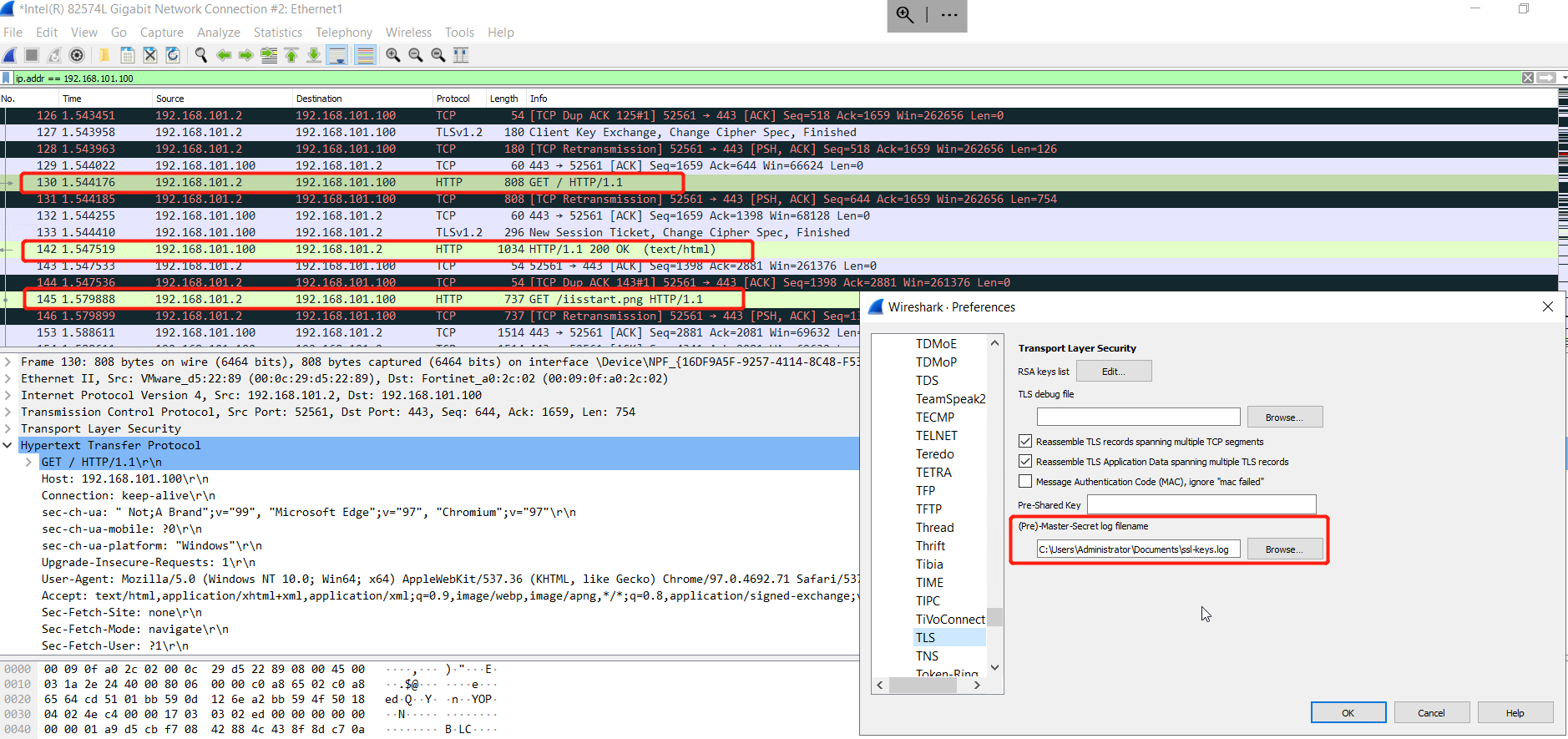 If you’re using a Windows client and want to decrypt SSL/TLS traffic from the client to FortiWeb, there is a simpler way to get the SSL keys instead of retrieving them from FortiWeb diagnose output.