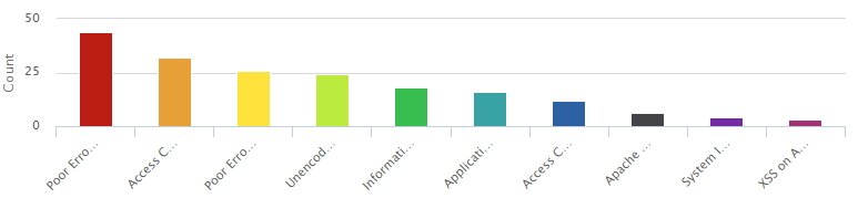 When viewing the pie chart by Severity or Scanner Type, click an element of the pie chart to drill down another level and view the proportion of specific types of vulnerabilities for that element: