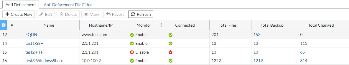 The anti-defacement feature maintains a list of files that have changed for each website it monitors. You can use this list to review, accept, and revert the changes.