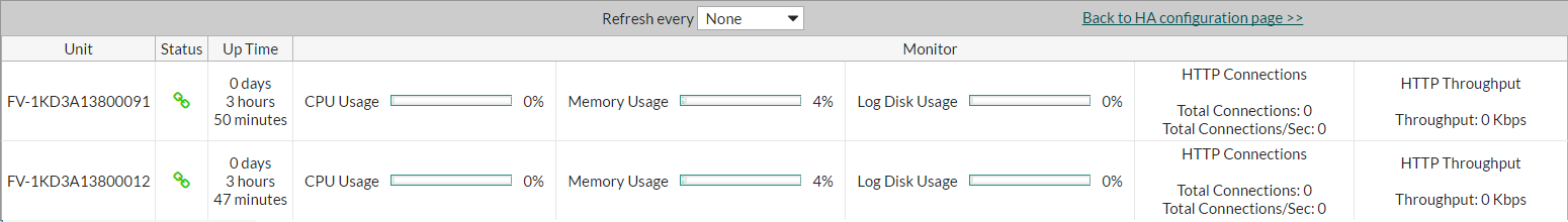 From System > High Availability > HA Topology, click View HA Statistics in the top right corner of the window. The following information about each unit in the group is displayed: