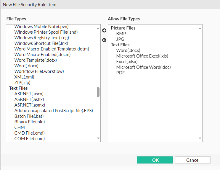 14. Select the File Security rule from the drop down list.
