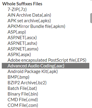 To determine the file type solely based on its extension, you can select the appropriate file types under "While Suffixes Files".