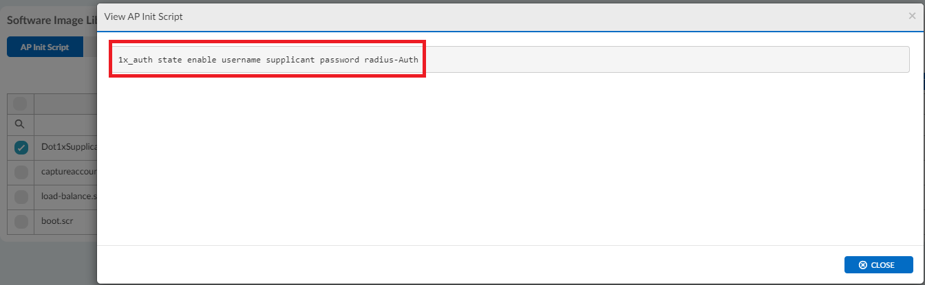 - Run the 1x_auth state enable username <username> password <password> command. To disable, run the 1x_auth state disable command.